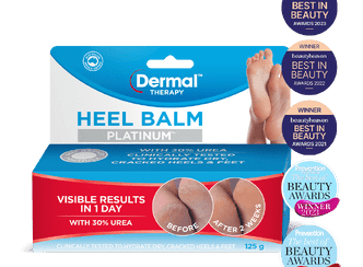 Dermal Therapy Heel Balm is enhanced with 25% urea, which binds water and retains moisture, providing intense hydration of the skin and loosening flaky layers. Plus, it promotes regeneration of the epidermal barrier, which means smoother heels and softer skin, also suitable for people living with diabetic anhidrosis.