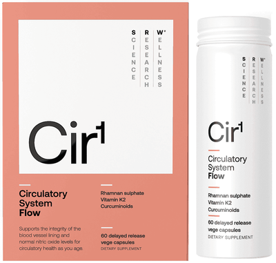 Cir1 Flow provides a unique and synergistic combination of Rhamnan sulphate , Vitamin K2, Curcuminoids and a carefully selected range of vitamins which support the integrity of your vessel lining, for overall blood vessel health.